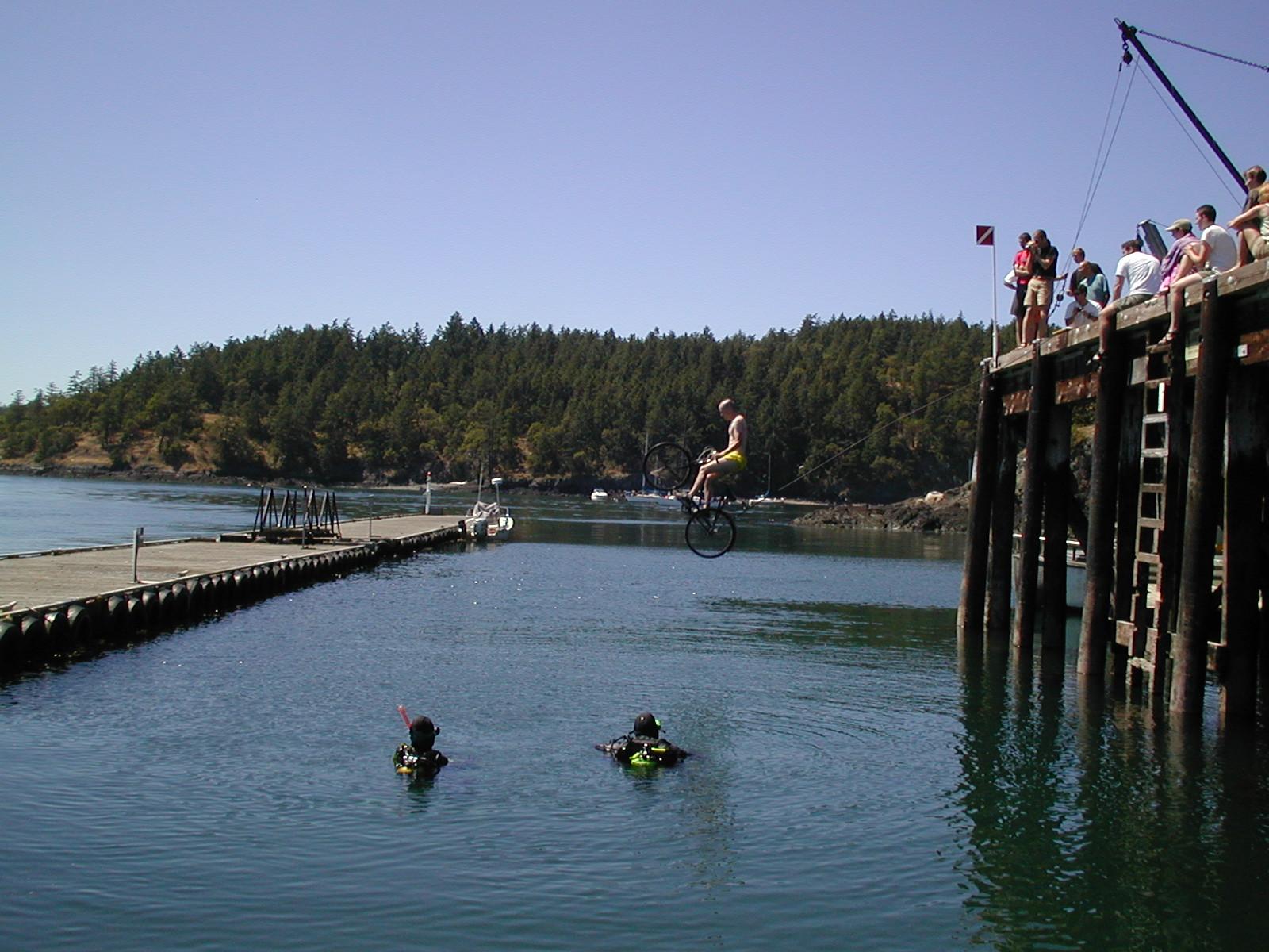 enthusiasm and hutzpa. Here, he demonstrates how to ride a bicycle off of the