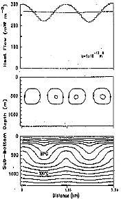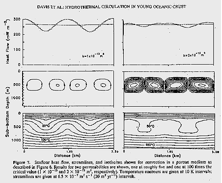 From the perspective of organisms in the subsurface seeking habitat, an important constraint derived from heat flux studies is the temperature field. While the temperature field associated with the heat flux predicted by the conductive plate model is relatively simple, the effect of hydrothermal circulation -- where it is possible -- is to deflect the isotherms in proportion to the fluid velocity field. According to the Rayleigh-Darcy criterion, the onset of hydrothermal circulation in the subsurface will depend not only on the vertical thermal gradient, but also the crustal permeability and thickness, the kinematic viscosity of the fluid(s), and the coefficients of thermal conductivity and expansion. Though it is fascinating to consider how organisms in the subsurface might alter fluid properties to their advantage, I will consider the fluid parameters constant at this point. Similarly, thorough modelling of the temperature field will require reconsideration of heat source geometry (and dynamics!), with special attention to the "cracking front" hypothesis of Lister (1974).