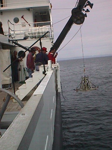 We used the ship's winches to lower two types of geological sampling devices to the sea floor...